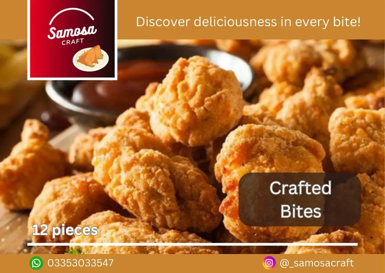 At **Samosa Craft**, we believe in serving only the best. Our **Crafted Bites – Chicken Hotshots** are a testament to our commitment to quality and taste. These crispy, golden delights are made with premium chicken, seasoned with a blend of flavorful spices, and coated to perfection for an irresistible crunch in every bite.